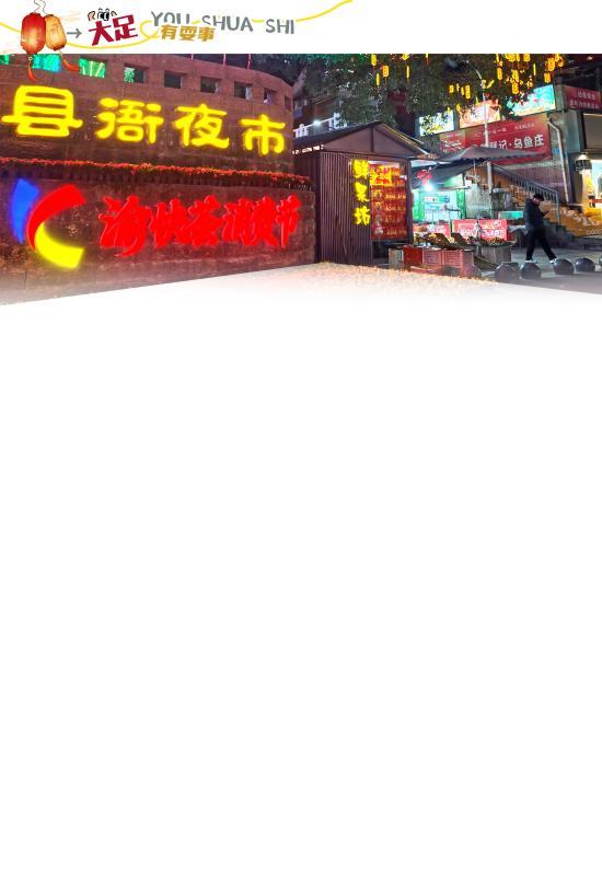 今年2月6日,承载大足人集体记忆的母城片区正式焕新开街。原烟草公司老院落变身非遗百工坊,丁家坡好吃街汇集老字号小吃,大足印象夜市街区以光影艺术点亮街巷,县衙夜市、滨河路艺术挑台等场景同步亮相——一个“吃游购娱”一体化的城市会客厅呈现在市民眼前。