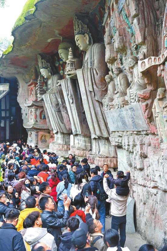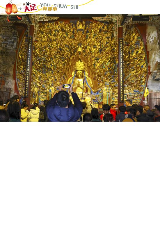新春佳节,大足区围绕石刻文化、非遗民俗、新春灯会、文旅体验等主题,推出系列特色春节活动。景区景点人气旺盛,民俗展演、灯会夜游、文艺演出、特色市集轮番上演,市民游客沉浸在喜庆祥和的节日氛围中,感受大足独特的年味与文化魅力。 大足融媒—新大足记者 瞿波 蒋世勇 摄