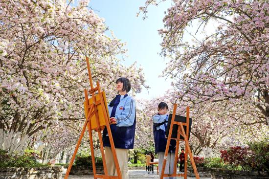 三月暖阳,大足中学本部文化广场内,数十株垂丝海棠迎来盛花期。作为“足中八景”之一,这片承载古昌州海棠基因的花林不仅是师生春日打卡的胜地,更是大足春季文旅的一张靓丽名片,吸引不少市民与校友前来共赏春光。 大足融媒—新大足记者 黎刚强 刘琴 曾亦嘉 摄