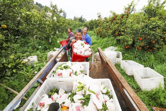 近日,中敖镇麻杨村盈科果业专业合作社的200余亩柑橘迎来丰收。果园内,春见、沃柑等优质品种挂满枝头,果香四溢,村民们正忙着采摘、分拣、装筐,脸上洋溢着丰收的喜悦。农忙时节,果园吸纳周边近30名村民就近务工,帮助村民在“家门口”就业增收。 大足融媒—新大足记者 黎刚强张力摄