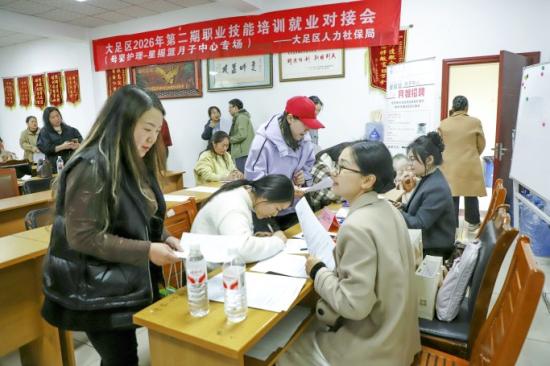 大足融媒—新大足讯(记者 邓小强 文/图)近日,大足区2026年第二期职业技能培训就业对接会举行。参加了免费月嫂培训班的43名女学员全部学成毕业,30多人与月子中心签订就业意向书,9人签订就业协议,实现毕业即就业。