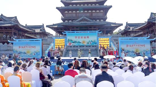 大足融媒—新大足讯(记者陈安林 李海 文/图)4月4日下午,“巴蜀文化旅游走廊—第六届大足石刻华服周”暨“青春大足·石刻绽放”华服国潮盛典,在大足石刻博物馆广场举行。